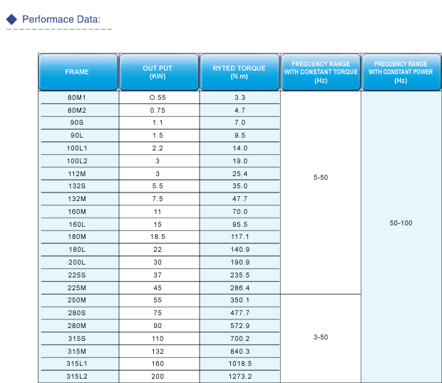 This series of inverter duty motor is the subseries of Y2 series 4 pole motor with IP54 protection. the same rated output motor has the frame same as Y2 series motor except a longer overall lenght, Its electrie performance and installation dimension conform to the relative standards of IEC -60034. This motor can be powered by general inverter with VVVF control Character.With independent axial blower, this motor (IC416)can get efficient cooling all frequeney range.